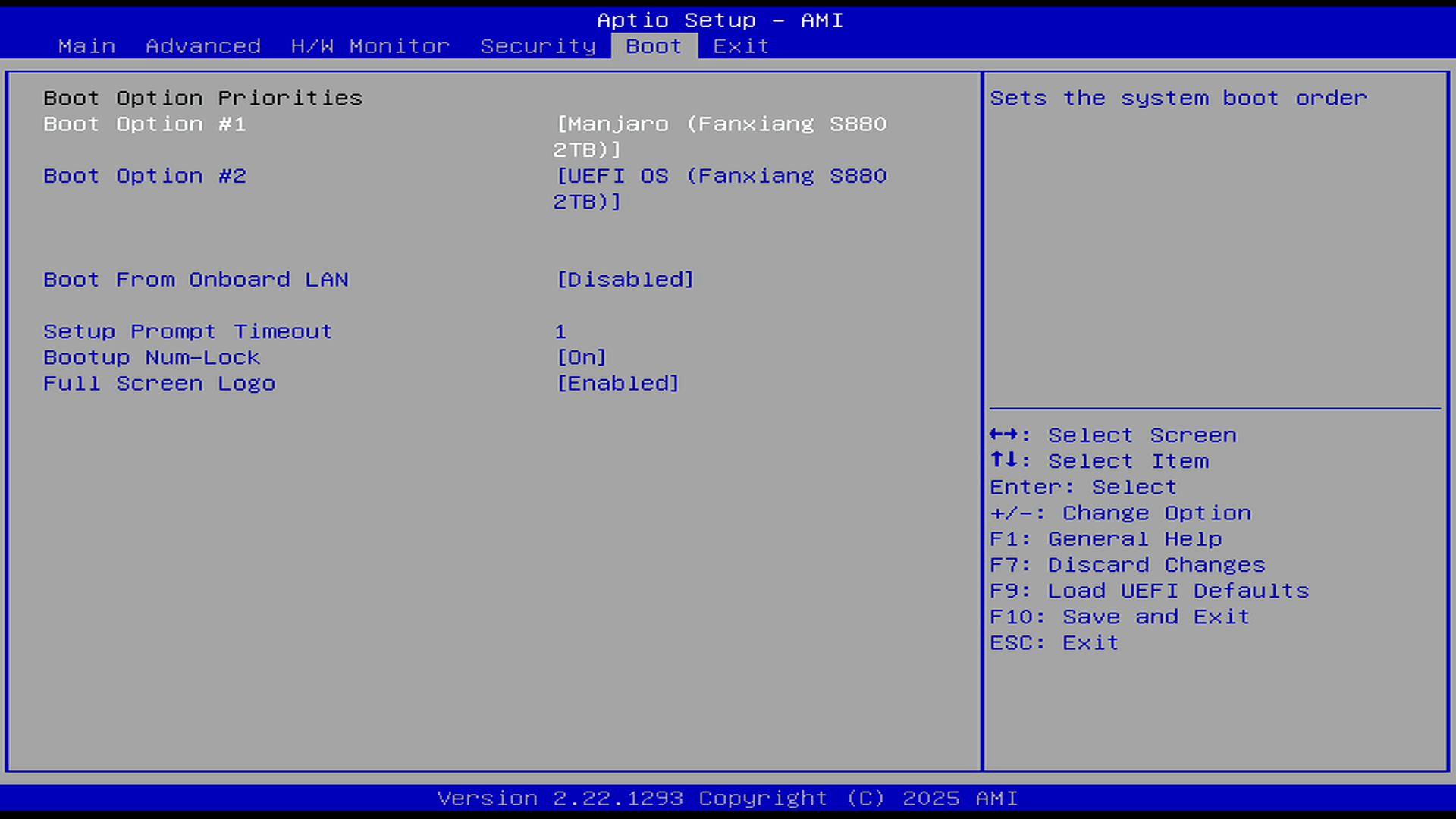 This is another useful section where you can set the order of devices. In the image I only have 1 NMVe present and no external USB devices are attached.