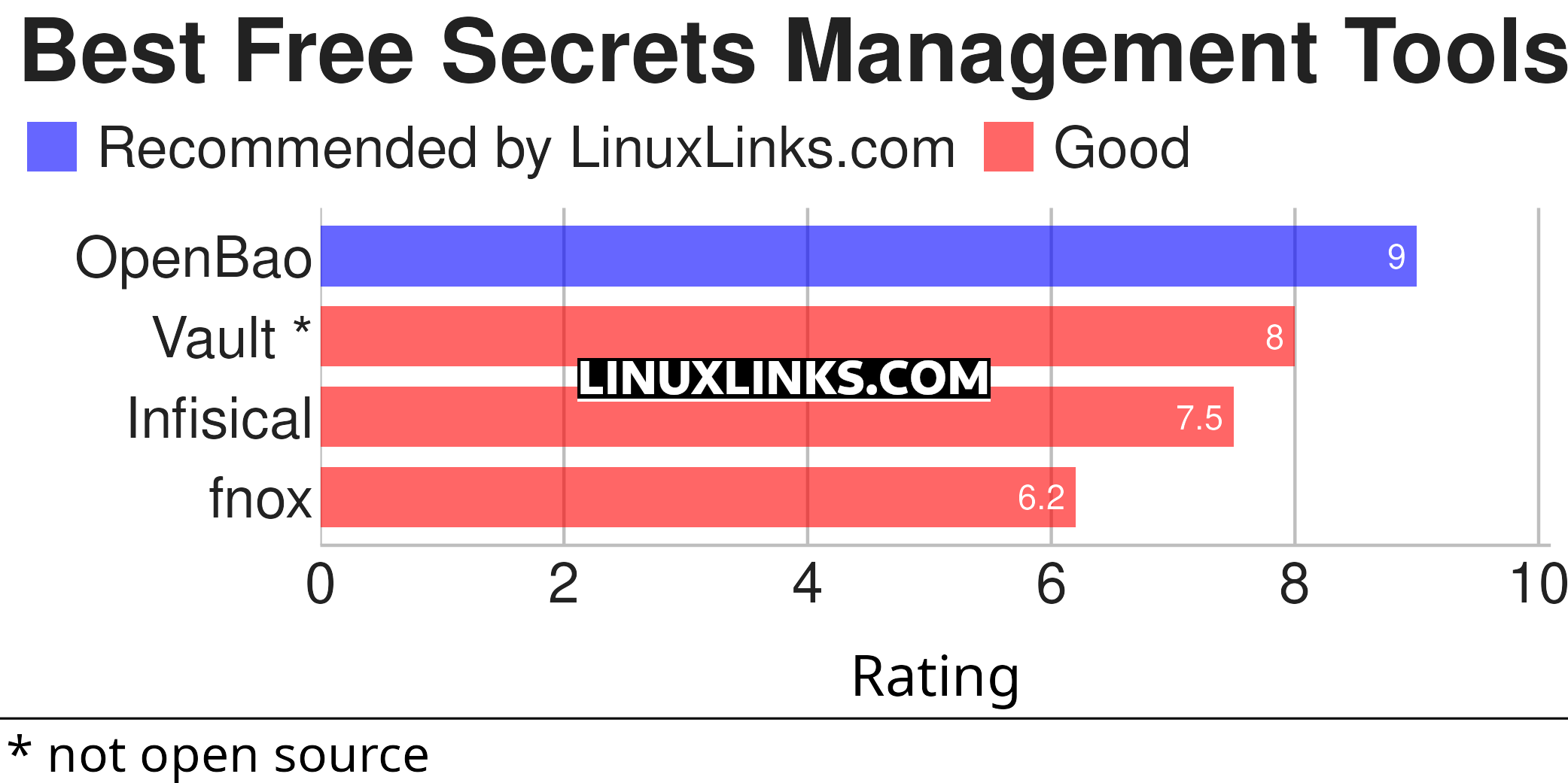 Here’s our verdict captured in a legendary LinuxLinks-style ratings chart. Only free and open source software is eligible for inclusion here. Note that Vault’s license is not compliant with the standard definition of open source.