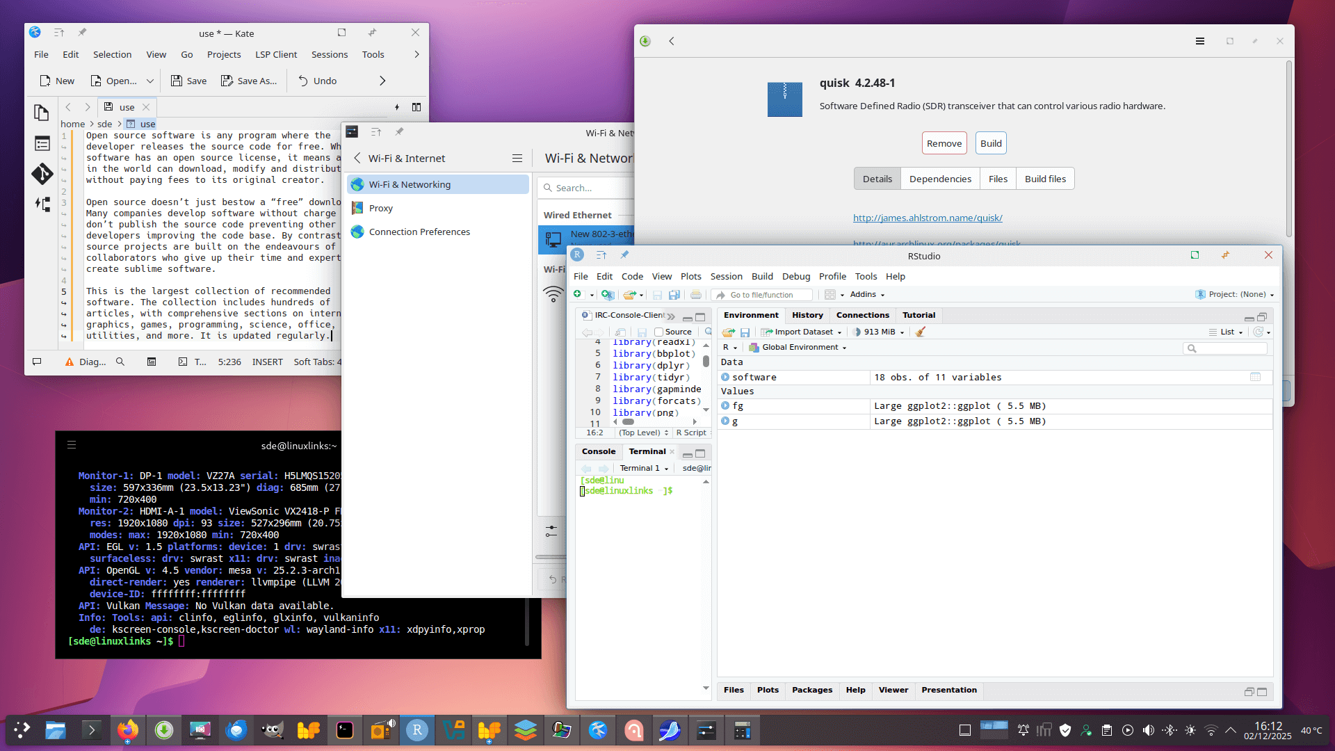 All the hardware works out of the box including WiFi, Bluetooth, and displays set at their correct resolution and maximum refresh rate with the default kernel.