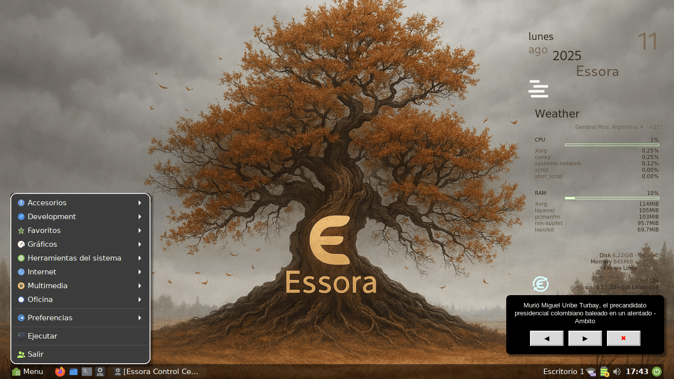 Essora Eos is a minimalist Linux distribution based on Devuan excalibur, designed to be lightweight, fast, and fully customizable. It provides only the essentials, without bloatware or unnecessary configurations, giving the user complete control.