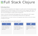 Read this guide at https://www.fullstackclojure.com/. There’s also a GitHub repository at https://github.com/mattmakai/fullstackclojure.com.