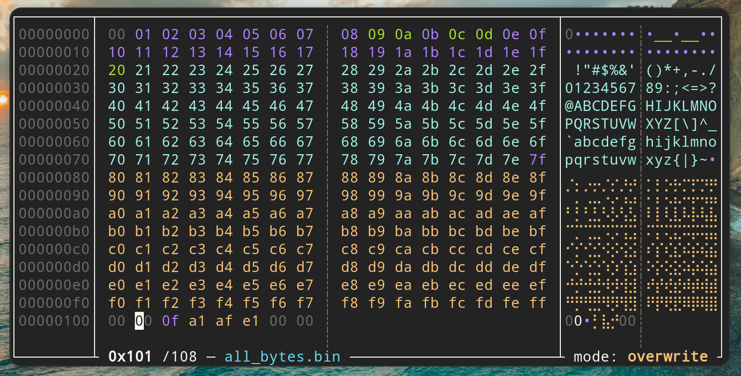 Hextazy is a colorful hexadecimal editor, inspired by hexyl.