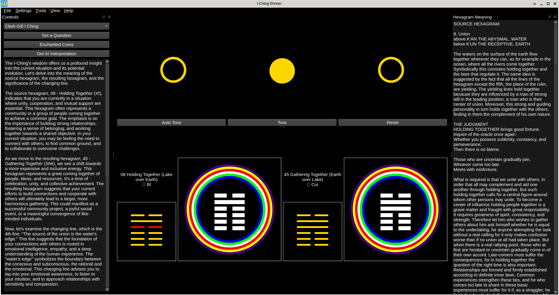 IChingDiviner is a desktop I-Ching divination application that brings the traditional Chinese oracle to Linux with a modern interface.