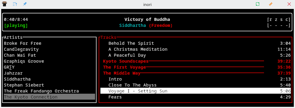 It provides a text user interface focused on efficient music library browsing and playback control, with a folding library view inspired by cmus, a dedicated queue interface, and fast fuzzy searching across tracks, albums, and artists. The project is designed for keyboard-driven use and offers configurable, chainable key bindings along with detailed configuration options.