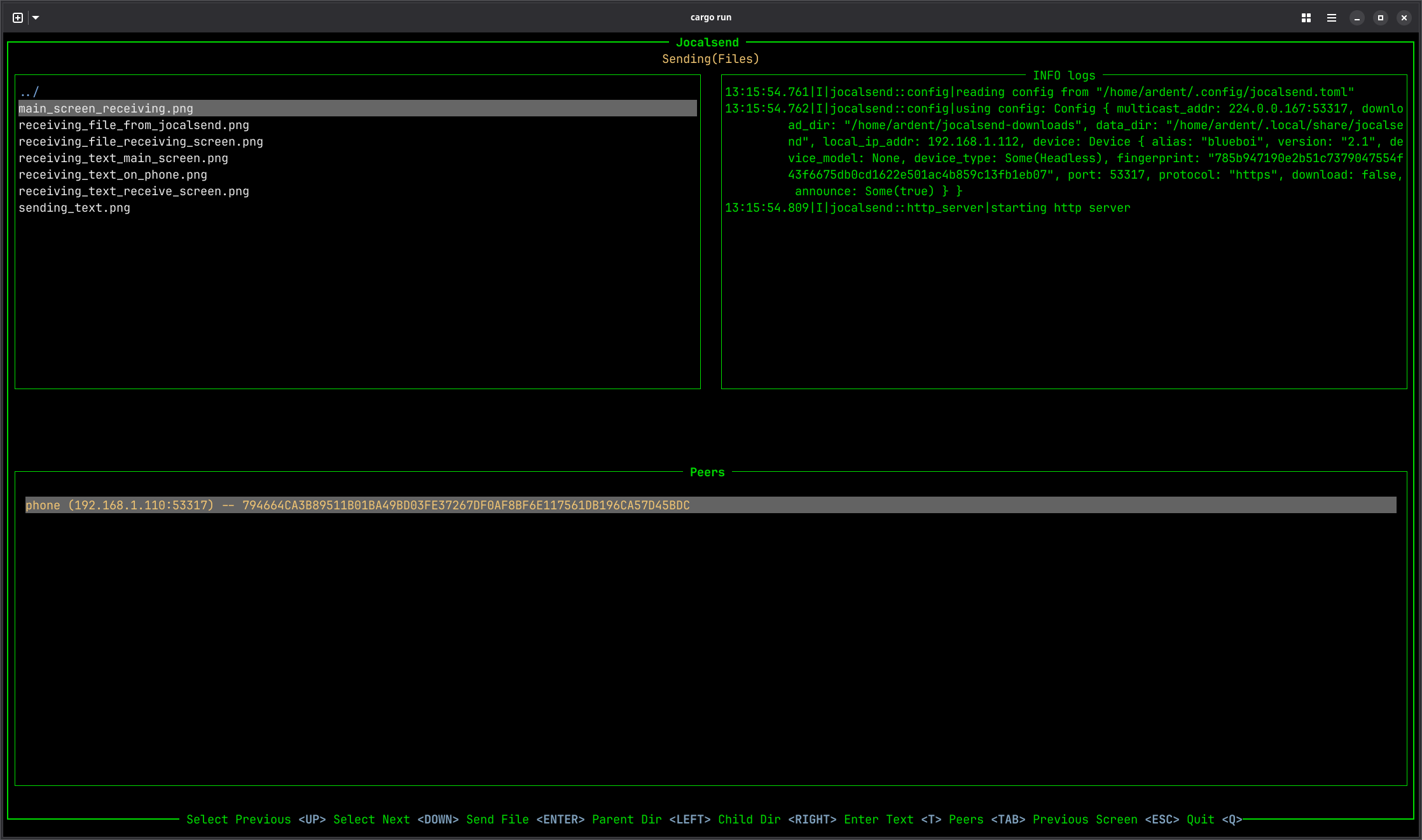 JocalSend is an implementation of the LocalSend protocol that uses Ratatui to provide an interactive terminal-based application, and is compatible with the official app.