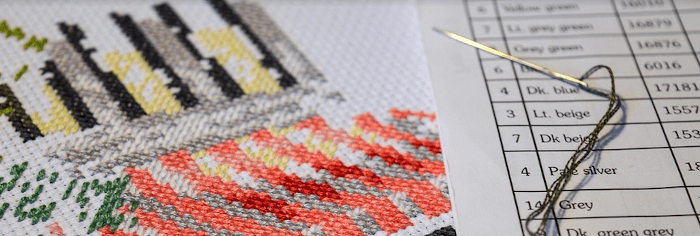 | Cross-stitching | A form of sewing and a popular form of counted-thread embroidery |