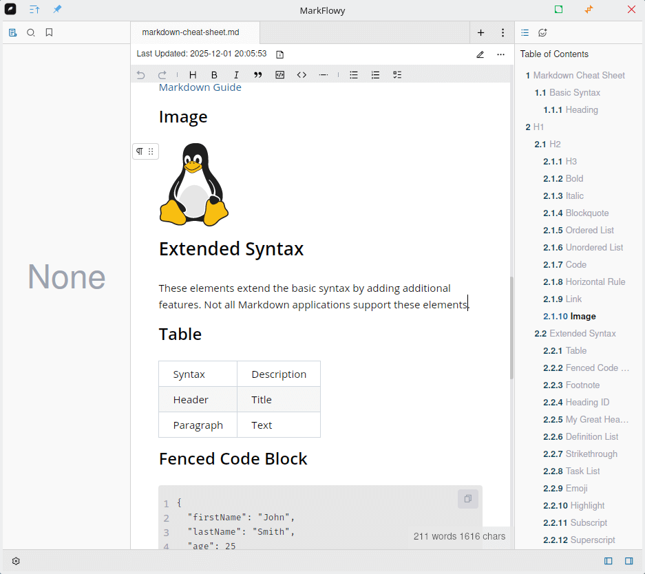 - Editing Multiple File Types: In addition to Markdown, it supports editing JSON, TXT, and other file types.