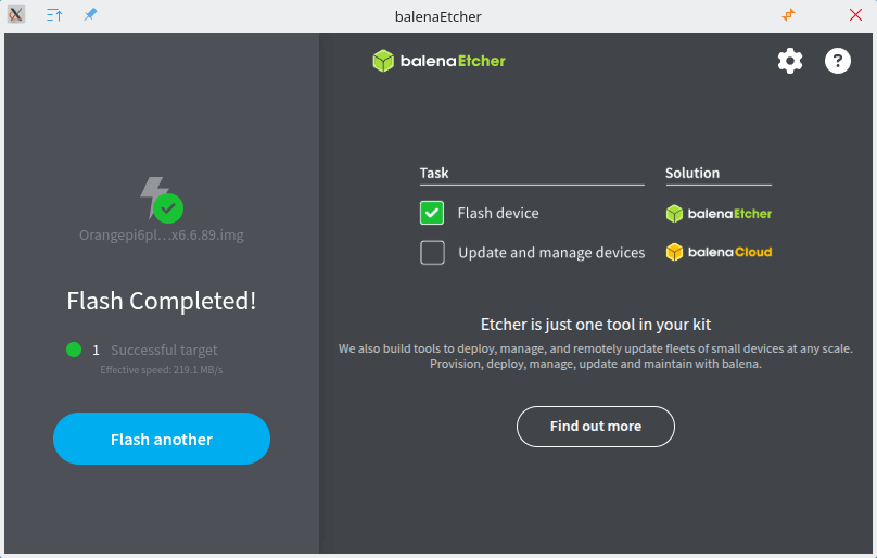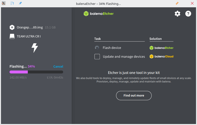 Here’s balenaEtcher in action. I’m using a 1TB microSD card which, by microSD standards, has decent write speeds.