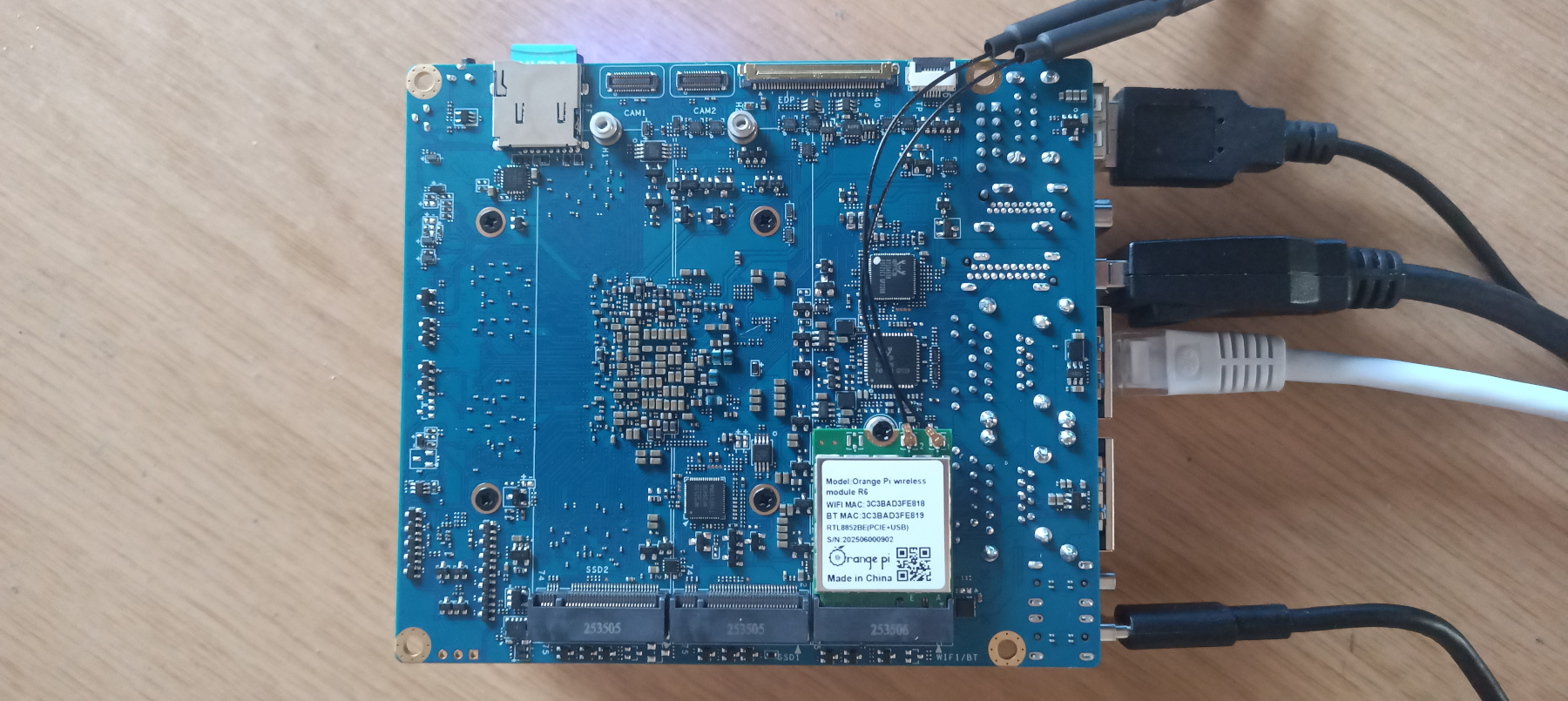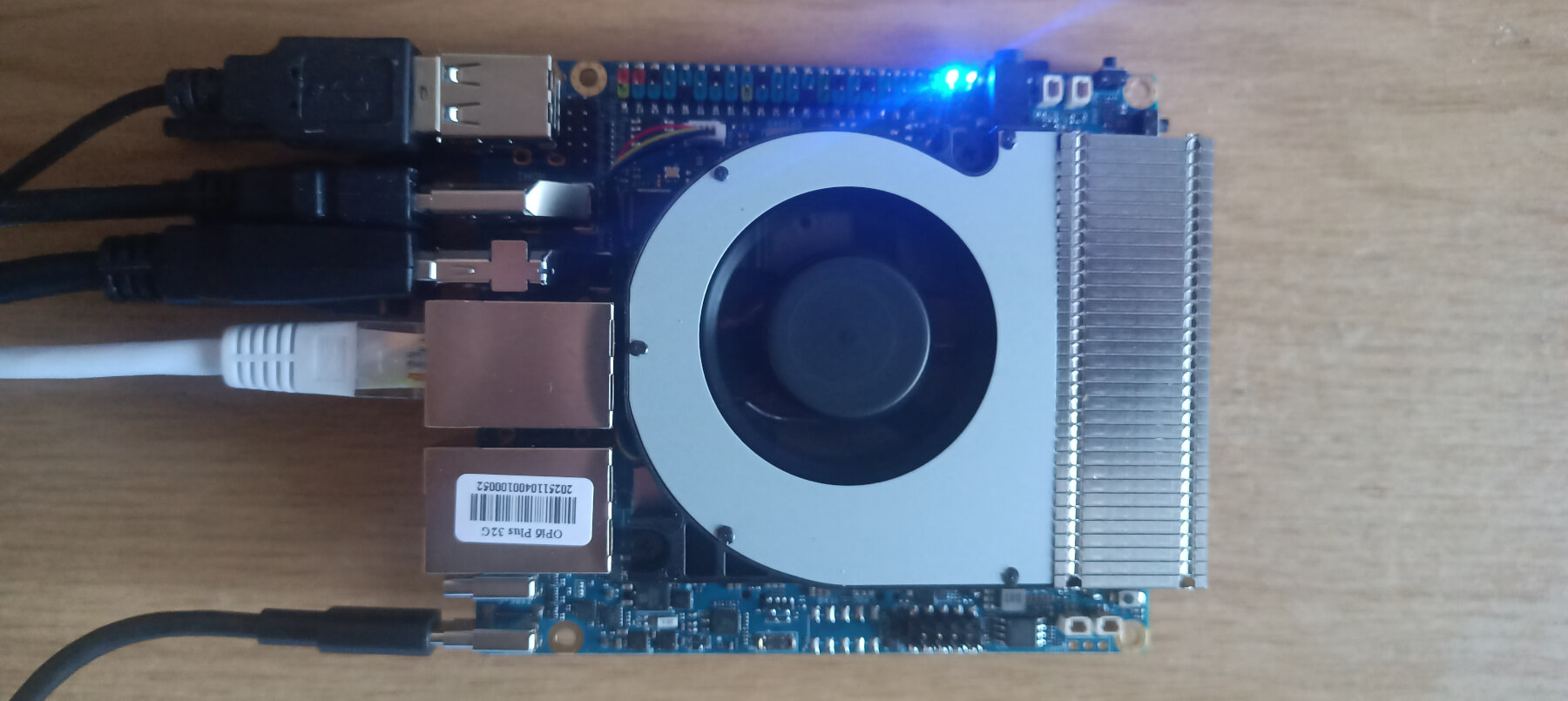 Getting up and running is similar to any single-board computer. The most straightforward way is to download the Debian 12 image (Orangepi6plus_1.0.2_debian_bookworm_desktop_gnome_linux6.6.89.img.xz) via the OrangePi website. Then write the downloaded image to a microSD card using software such as balenaEtcher. I’ve also tested writing the image to a USB 3.2 Gen 2 USB drive. It’s definitely better to use an NVMe or fast USB drive than a microSD card as you’ll get much faster disk read and write speeds helping to make the board feel more responsive.