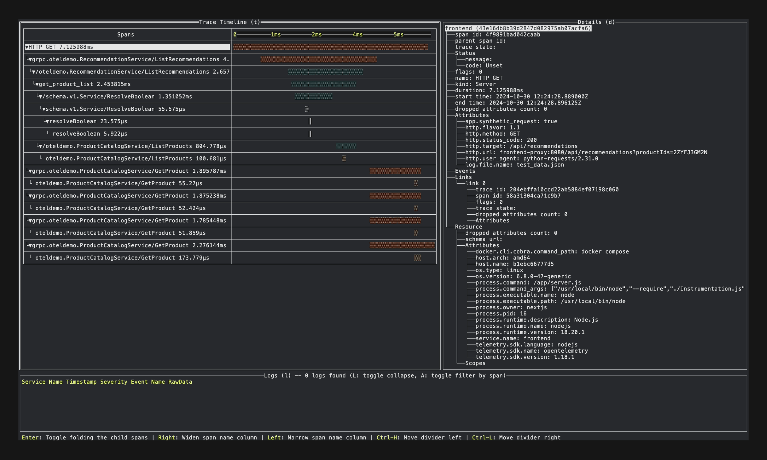 otel-tui is a terminal-based observability viewer that lets you inspect telemetry data directly from a text user interface.