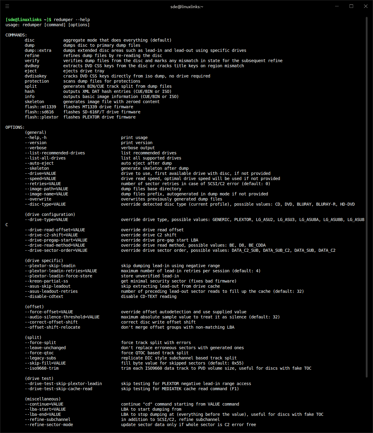 redumper is also a general purpose DVD/HD-DVD/Blu-ray disc dumper. DVD and later media format dumping is implemented using high-level mode thus most of the complexities described in this document are related to the CD technology. If you intend to dump DVD media and later, you can usually use any drive and it just works.