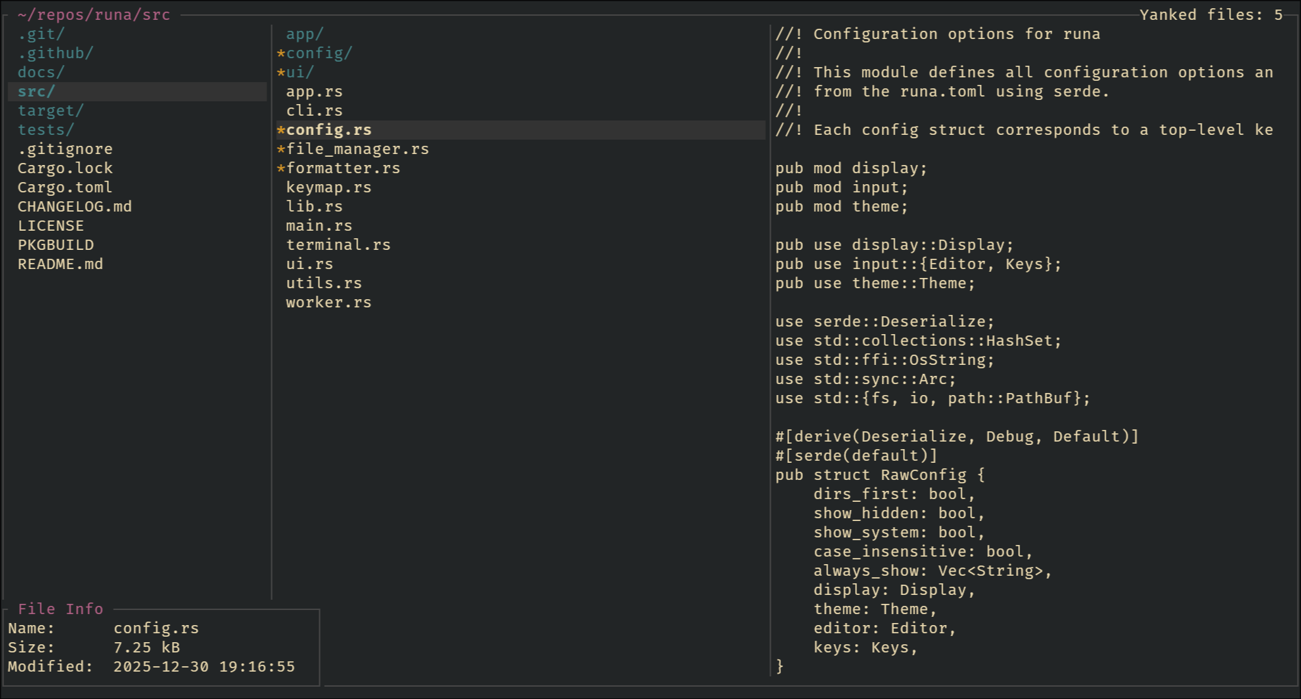 runa – rn is a minimalist terminal file manager focused on speed and simplicity.