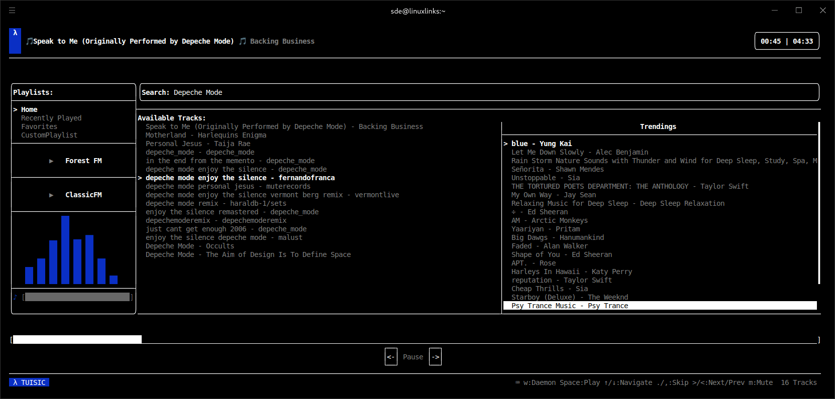 TUISIC’s billing intrigued me. Its developer claims that the software is the first of its kind. A bold statement. So what’s TUISIC? It’s a simple TUI online music streaming application written in C++ with vim keybindings.